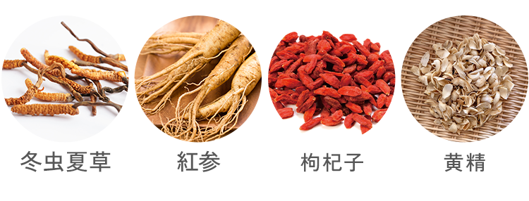 フアイア配合錠は、これまでの臨床経験での使用実績をもとにフアイア顆粒の量を調整配合し、さらに冬虫夏草など4種の補助生薬を組み合わせることで、全体として効果が期待できる量に設計された処方です。