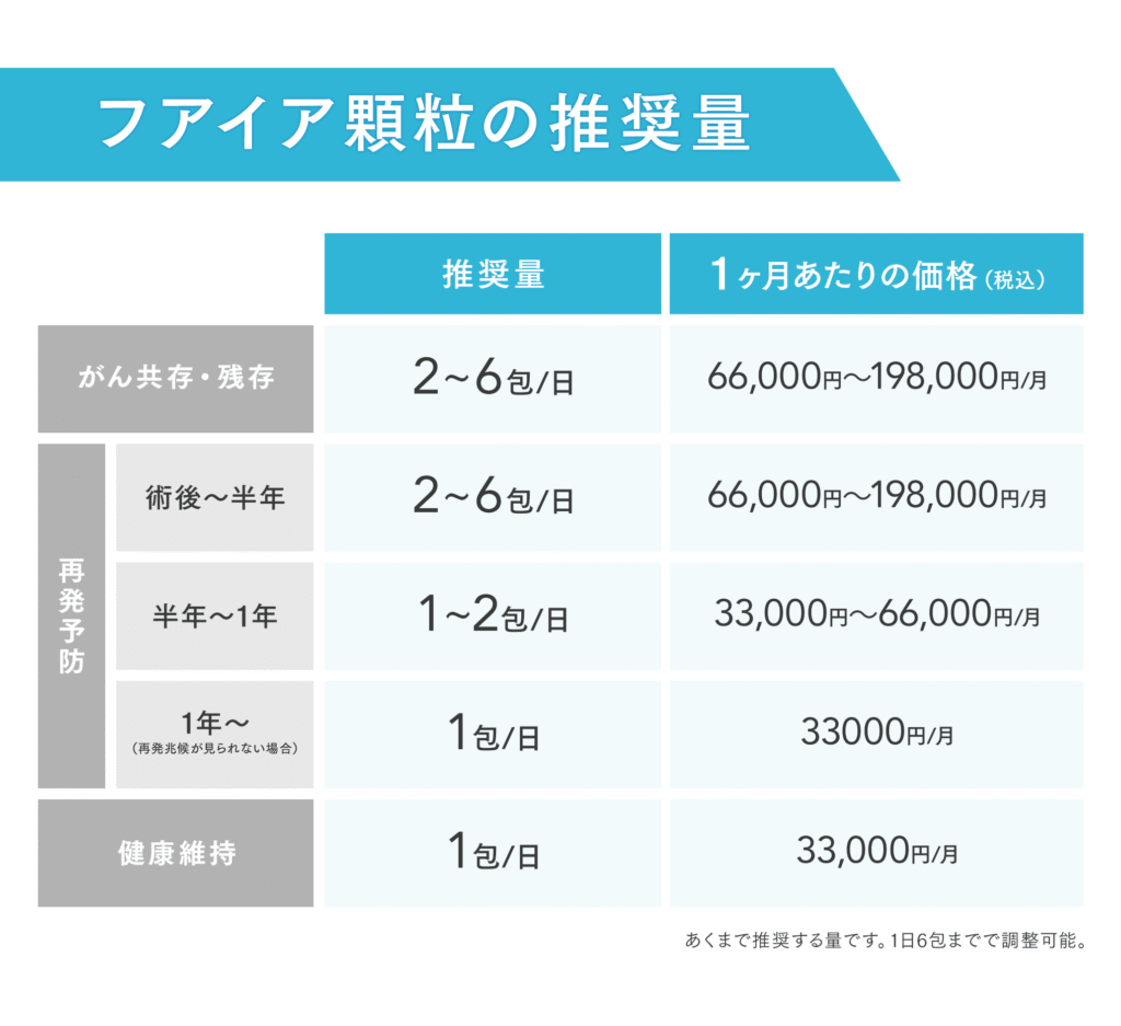 (2)処方可能なフアイア製品の料金 ※税込み価格です。